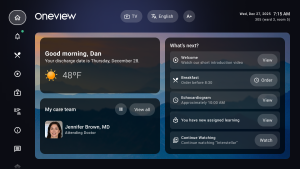 We value the human touch in healthcare. That’s why we partner with hospital systems like yours every day to enhance it. We provide reliable care experience technology behind the scenes, so that care teams and patients can focus on healing and health. At Oneview, we’re transforming the way care is experienced.